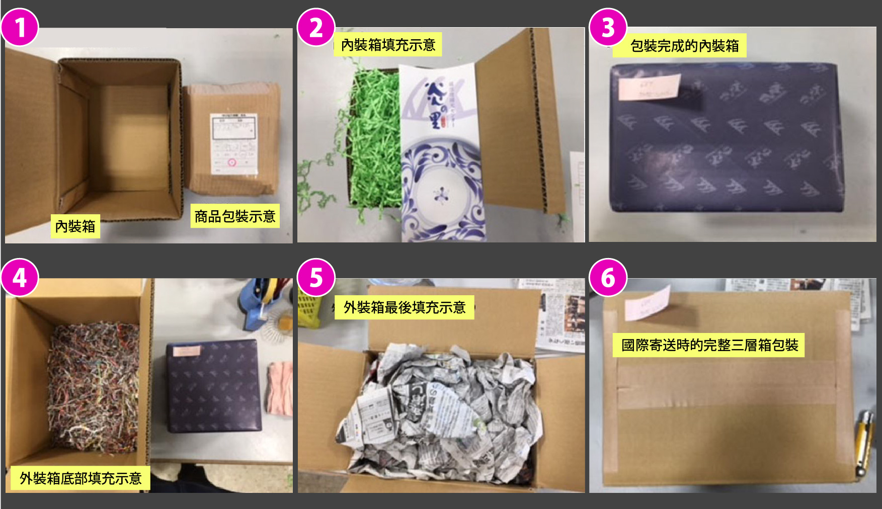 為避免商品因運送而有破損情況,日本出貨端會將商品以多層紙箱與緩衝材等包裝保護,示意如下圖。